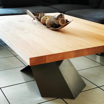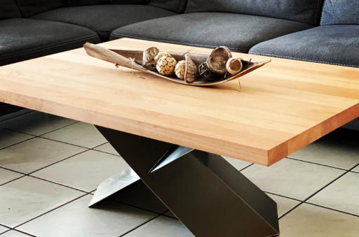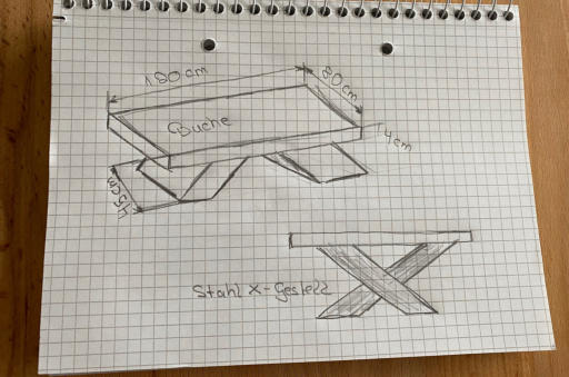 Aufbauend auf Sandras Skizze ist der unten zu sehende Couchtisch entstanden. Der Fuss besteht aus geschliffenem Edelstahlblech. Die Tischplatte ist eine Vollholzplatte aus Buche und wurde geölt.Gefällt dir dieser Tisch? Oder hast du eine Idee, wie dein Traumtisch aussehen soll?Melde dich direkt bei Michael. Er ist bei der DIYFactory für die Konstruktion verantwortlich:michael@diyfactory.de / 024118727623